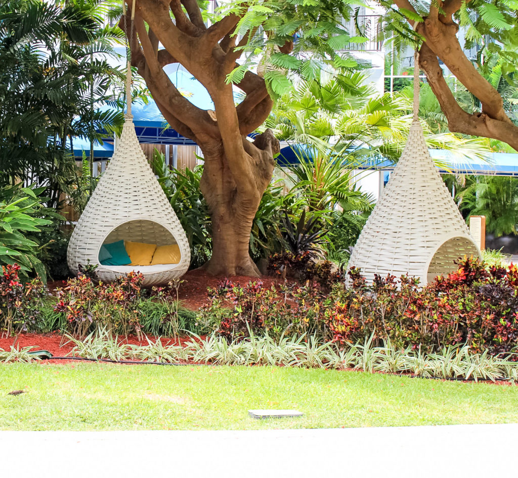 Arriving back at the hotel, I’m full of energy! The main pool looks less crowded today, so I stake out a lounge chair and swim to the swim up bar for a couple of mocktails. There’s music playing and water volleyball and it’s just lots of fun. Eventually, I wander over to these super cool, honeycomb swings and get lost in my book for a few hours.